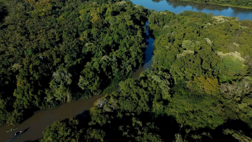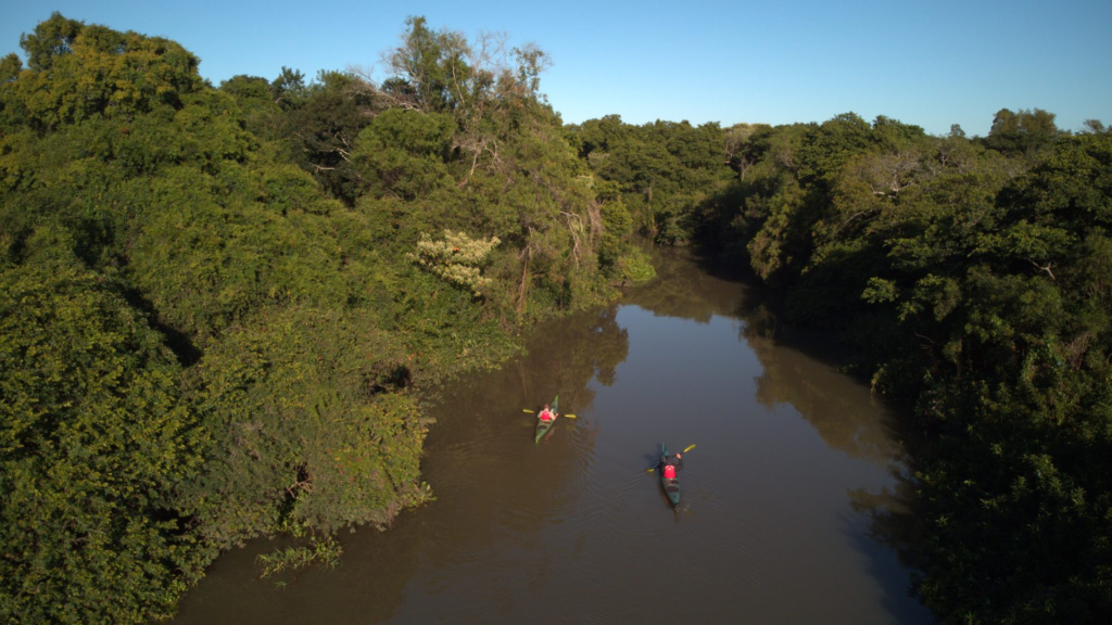 Pero su apuesta va más allá de la protección territorial. Busca cambiar una idea profundamente instalada: que los ríos separan. Ambá propone lo contrario y trabaja sobre la idea de que el río es un espacio que une comunidades, culturas y biodiversidad entre ambos países. Desde esa visión surgieron también las escuelas de kayak en San Javier y Nuevo Berlín, espacios gratuitos donde niños y niñas aprenden a relacionarse con el río desde la experiencia directa.