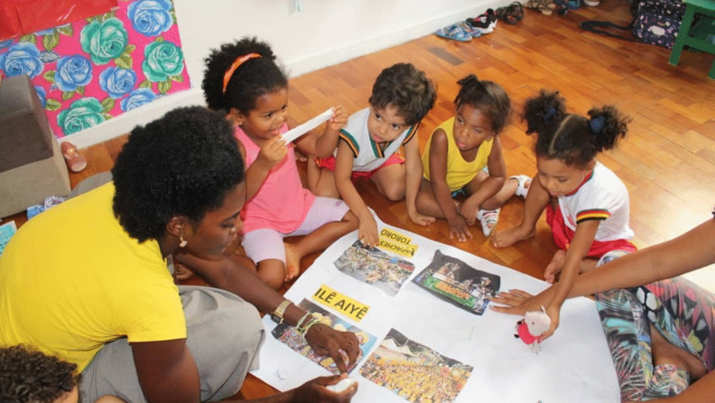 La escuela fue fundada por un grupo de educadoras negras que identificaron una deuda histórica en el sistema educativo brasileño: la ausencia de referentes afro e indígenas en los contenidos escolares. Su propuesta es clara: enseñar las materias tradicionales —como matemáticas, arte o ciencias—, pero integrando la historia y los saberes de los pueblos originarios y afrobrasileños. Así, la identidad deja de ser un tema marginal y se convierte en el eje de la enseñanza.